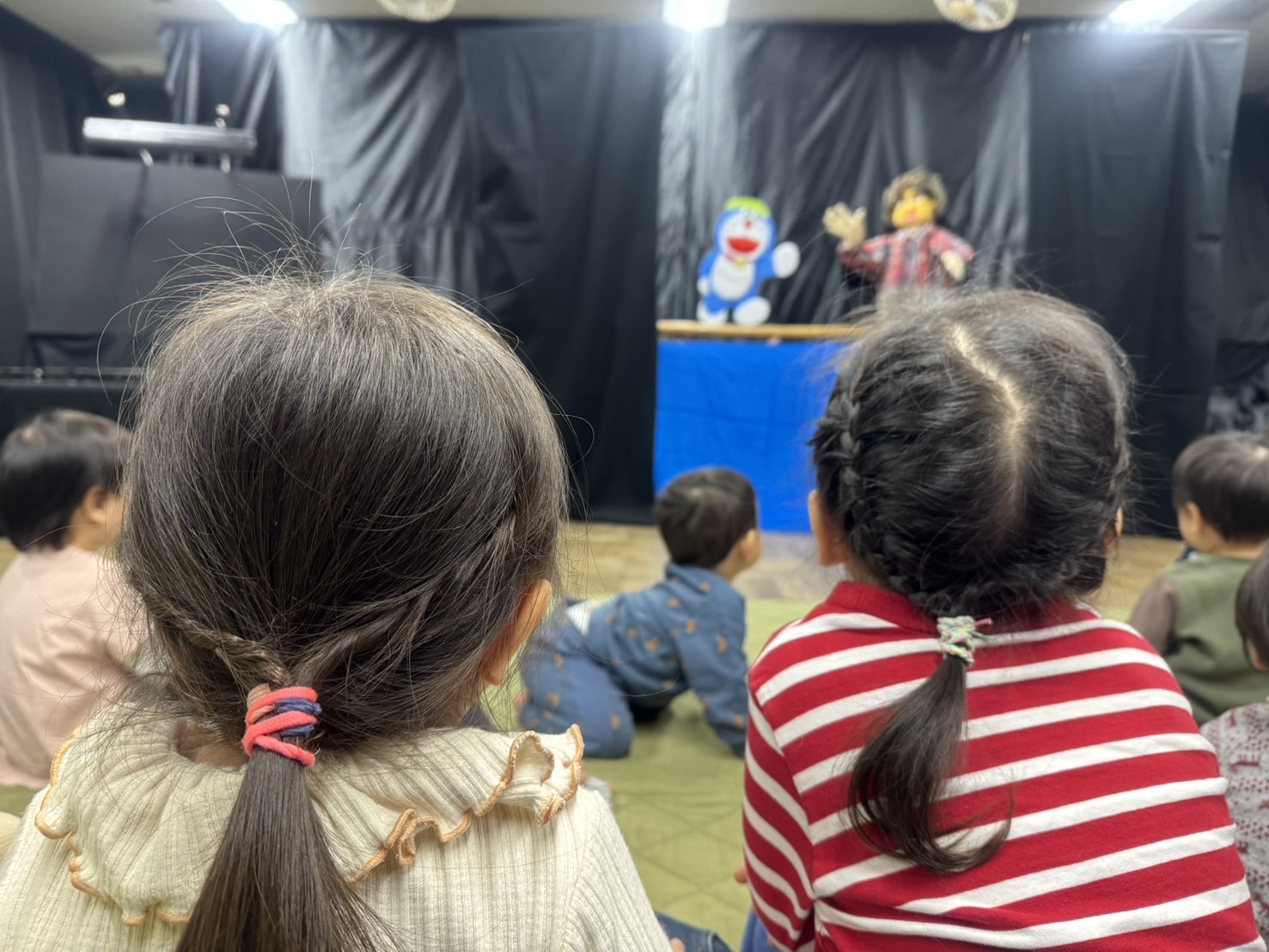 今日は2歳児さんは人形げきを見に鶴山保育所へ。