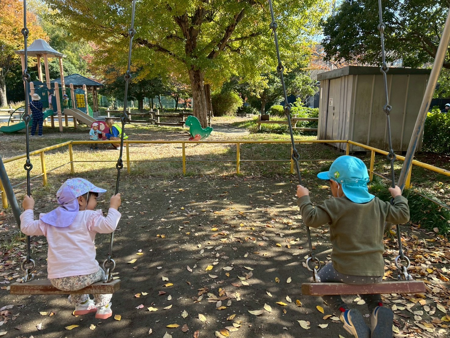日々の事 秋🍁ですね〜☺️ 投稿日:2025年11月17日 玄武公園に行きました。 紅葉と落葉がきれいで、みんな葉っぱの上を走っていました。 銀木犀の木があり、いい香りが漂っていました。 秋ですねー♪ -日々の事 -とっても綺麗でした⭐️, みんなで葉っぱの上をかけっこ!, 木々が色づき✨, 玄武公園へお出かけ!, 秋ですね〜🍁, 紅葉と落ち葉がとってもきれい✨, 色とりどりの葉っぱ!, 金木犀のいい香り